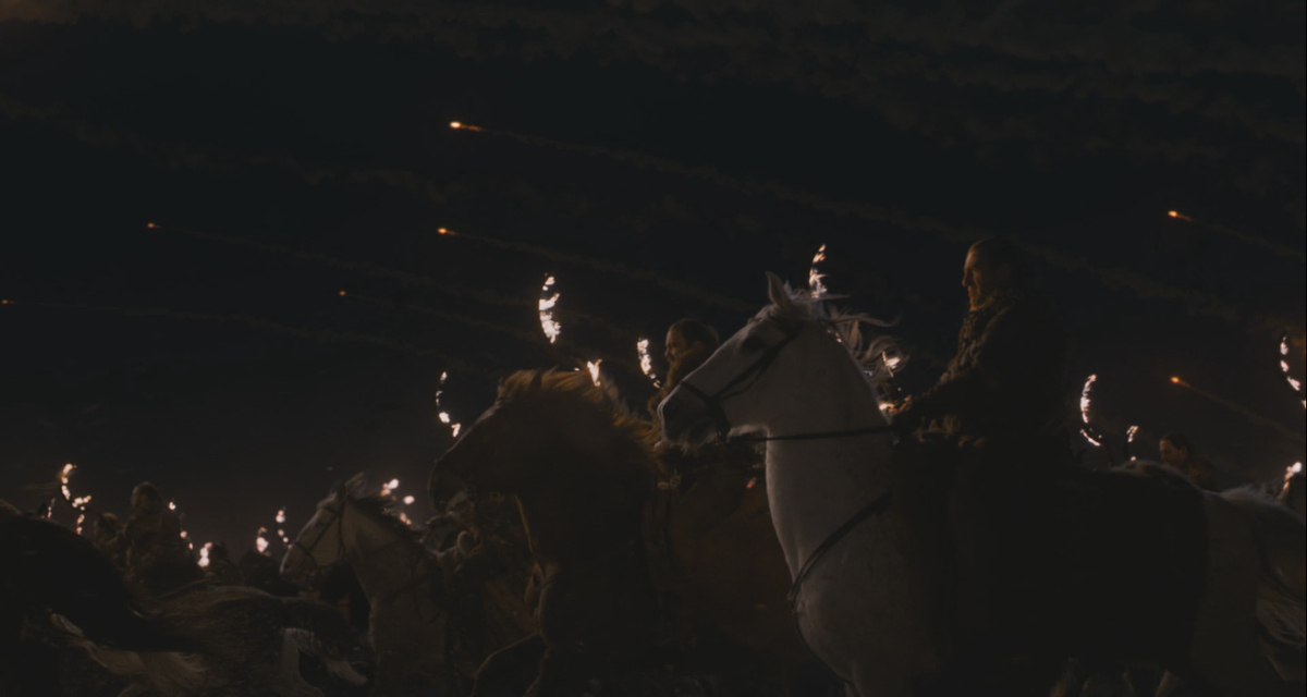 Неожиданный твист в конце. Из-за полной безнадежности в течение второй половины серии многие уже забыли, что в этой битве людям возможно победить. Джон собирается убиться об дракона, а оставшиеся персонажи окружены вихтами и вот Король Ночи уже стоит перед одиноким Браном. И из тьмы появляется Арья, которая пробегает мимо Белых Ходоков и прыгает в Короля Ночи, а конец вы уже знаете.