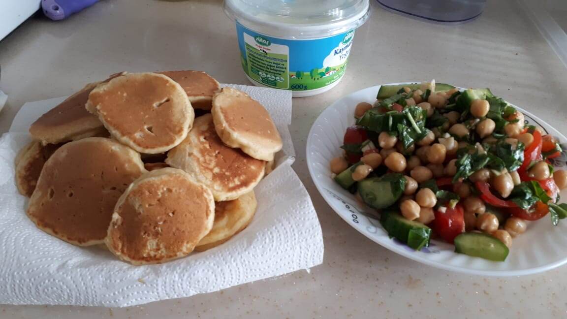 Фото от нашей подписчицы проживающей в Турции. Оладьи из нутовой муки и салат с нутом. Отличное меню на обед. Нут (турецкий горох) имеет в своем составе витамины (включая рибофлавин, тиамин, пантотеновую кислоту), незаменимые аминокислоты, жиры, клетчатку, белок (по степени усвояемости сходный с яичным), минералы (марганец, магний, кальций, фосфор, железо, кремний, бор). В семенах нута найдено около 80-ти компонентов. !! Важно знать: Из-за высокого содержания легкоусвояемого белка нут особо полезен людям, по тем или иным причинам, не употребляющим мясо.