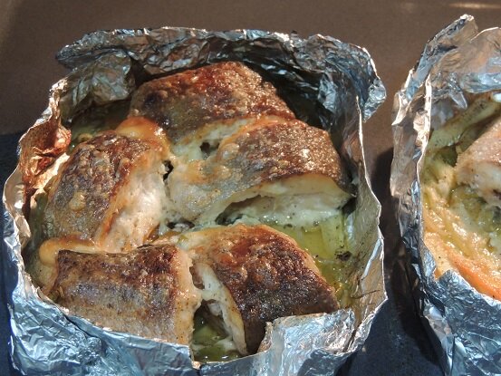 Всем привет, с вами снова я с отличным рецептом. Давненько на моих кулинарных страничках не было вкусно приготовленной рыбы. Спешу это исправить. Сегодня у меня форель, запеченная в конвертике с овощами. Радужная форель хороша в любом виде: жареная, вареная, запеченная. Такую рыбку невозможно испортить, здесь важен исключительно качественный исходный продукт. При покупке рыбы обращайте внимание на жабры, они должны иметь алый цвет. В последнее время продавцы стали потрошить и даже отрезать головы рыбы. В таком случае я стараюсь не покупать рыбу, хотя и привлекательная цена. Пример цен на сегодняшний день. Для приготовления понадобится: Форель очищаем, потрошим, вынимаем жабры. Постоянные читатели уже знают, что этим занимается у меня исключительно главный Дегустатор. Чему я безусловна рада. Рыбу разрезаем на порционные кусочки, голову я решила не запекать и отдать братьям нашим меньшим. Кошкам. Хотя моя половина любитель в ней поковыряться. Солим и перчим рыбу. Овощи очищаем, промы