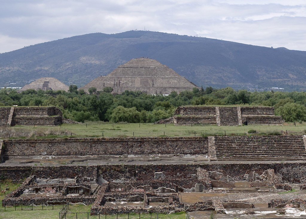 Над нами в прямом смысле слова стали сгущаться тучи. И очень надеясь успеть до дождя, мы устремились к главным объектам паломничества - пирамиде Солнца и пирамиде Луны.