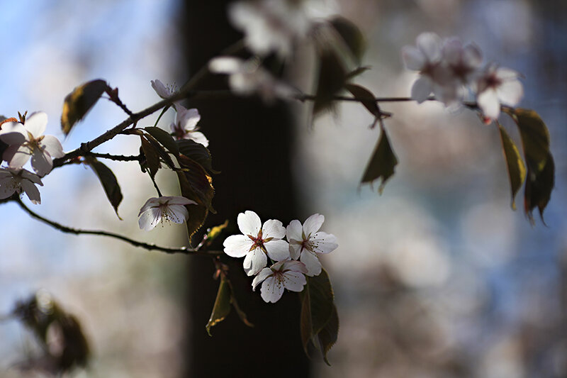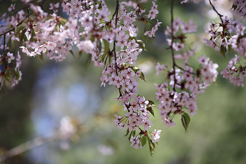 Не все деревья цветут обильно , но есть то, ради чего все спешат любоваться сакурой - розовые облака на фоне нежной зелени. Красота очень недолговечна - лепестки уже облетают, и через неделю она исчезнет.