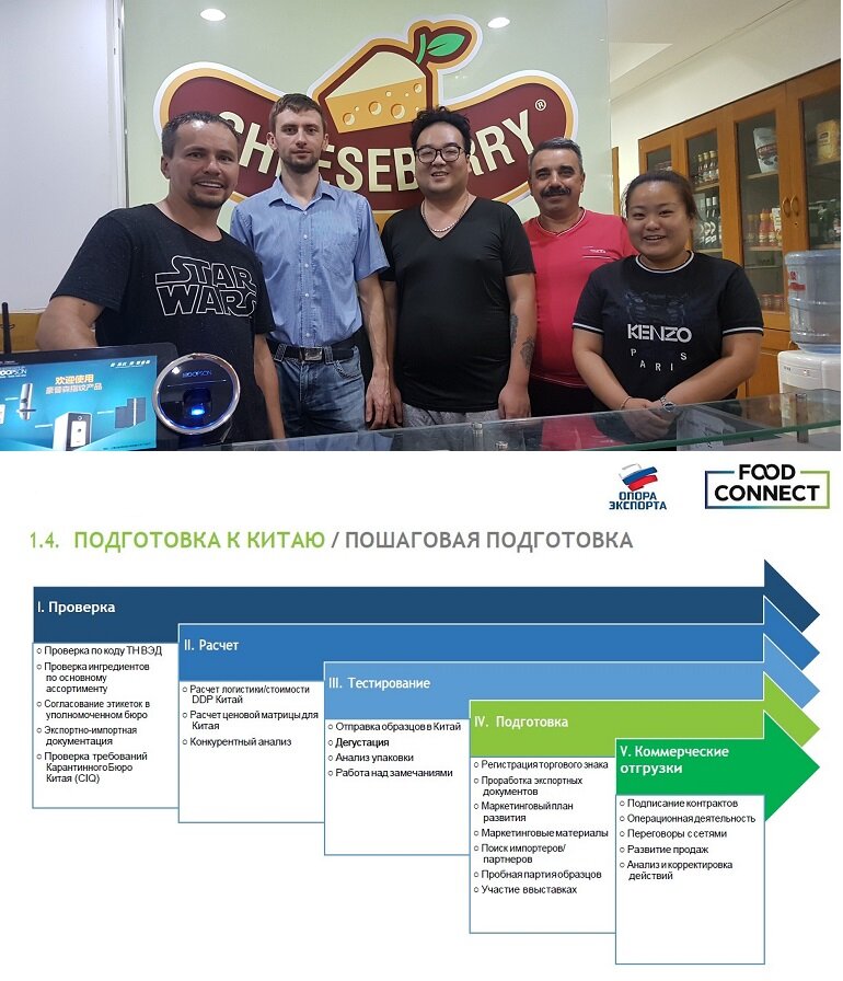 При экспорте в загадочный Китай нужно соблюсти принцип “7 раз отмерь...” Представляем отражение этого принципа, который мы выносили, выстрадали Опытом, Временем, Слезами. Это Дорожная карта. Пользуйтесь! Предэкспортный этап Подготовка к экспорту Когда вы будете проходить данные этапы, ВСЕГДА будут сложности, НО и остается возможность что-то исправить, допустим вкус, или упаковку. У нас эти сложности возникали на этапе тестирования продукции Чизберри. В течение дух лет продаж, мы три раза уменьшали сладость на 10% каждый раз. А сейчас в 2019г., мы ещё на 20% хотим уменьшить сладость. Вот так! Так же вы должны понимать, что при экспорте, самый лучший фидбэк мы получаем, когда мы начинаем пытаться работать “в деньги”. Если продукция не адаптированна заранее, то на выставке вам все улыбаются говорят, -Ой как вкусно! Но когда будет доходить дело до купли-продажи, вы услышите, что - упаковка не та, вкус не тот, слишком маленькая упаковка, слишком большая, фасовка нужна другая и т.д. За