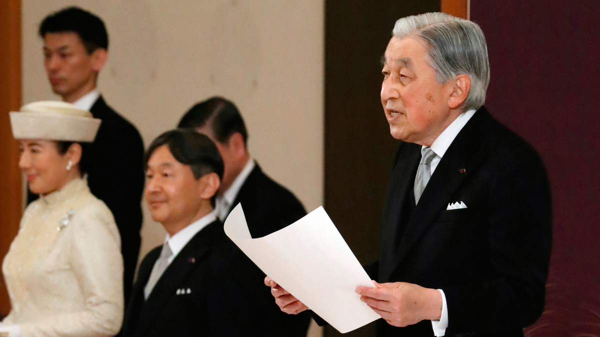 30 апреля в Императорском дворце в центре Токио прошла официальная церемония отречения императора Акихито от престола. Будучи символом японского государства, он обратился к людям с речью. "Начиная с того момента, когда я 30 лет назад взошел на престол, я выполнял свои обязанности в качестве императора с глубоким чувством доверия и уважения к людям, и я крайне счастлив, что мне выдалась такая честь. Я искренне благодарю японский народ, что принял и поддержал меня в роли символа государства. Я искренне желаю, чтобы эпоха Рэива, что начинается завтра, была стабильна и плодотворна, и я молюсь всей душой о мире и счастье всех людей в Японии и мире" Ранним утром император посетил Святилища Императорского дворца и выразил дань уважения Богине Солнца Аматэрасу, душам предков и различным божествам. Император прочитал текст, написанный на древнем японском, в котором сообщил божествам о своем отречении. Позже в Императорском дворце прошла официальная церемония. Помимо самого императора присутство