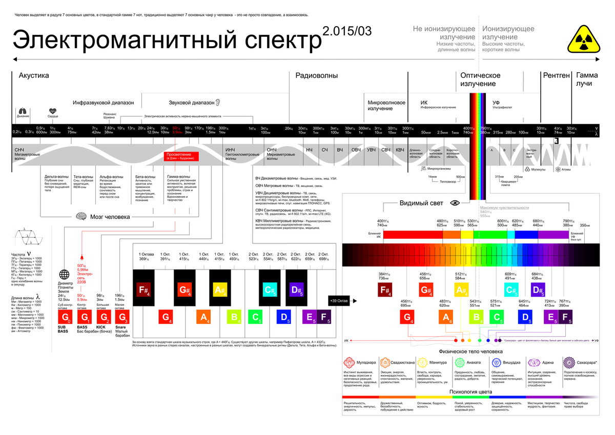 Электро-магнитный спектр излучения включает в себя несколько диапазонов: радио, СВЧ, инфракрасный, видимый, ультрафиолетовый, рентгеновский и гамма. Они не имеют строгих границ и в волновом приближении отличаются лишь частотой изменения э/м полей. Возникает вопрос о причине такого разделения. Оказывается, что для возникновения излучения в каждом из диапазонов необходимы процессы совершенно разной природы. Вы будете правы, если заметите, что для возникновения световой волны необходимо создать переменное электрическое или магнитное поля. К примеру, для создания переменного электрического поля частоты, характерной для радио диапазона, достаточно переменного тока в небольшом куске провода. Переменный ток - это упорядоченное переменное движение электронов внутри провода. Электроны - это заряженные частицы, ускоренное движение которых порождает переменное электрическое поле. Но как бы вы ни поднимали частоту тока, не получится достичь ни инфракрасного, ни более высокочастотного света. Дл