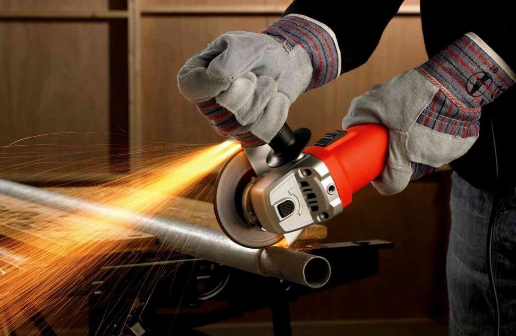 Угловые шлифмашины обладают большой мощностью и крупным диском. Поэтому их целесообразно использовать для обработки крупных изделий из толстого металла, например, стальных труб или балок.