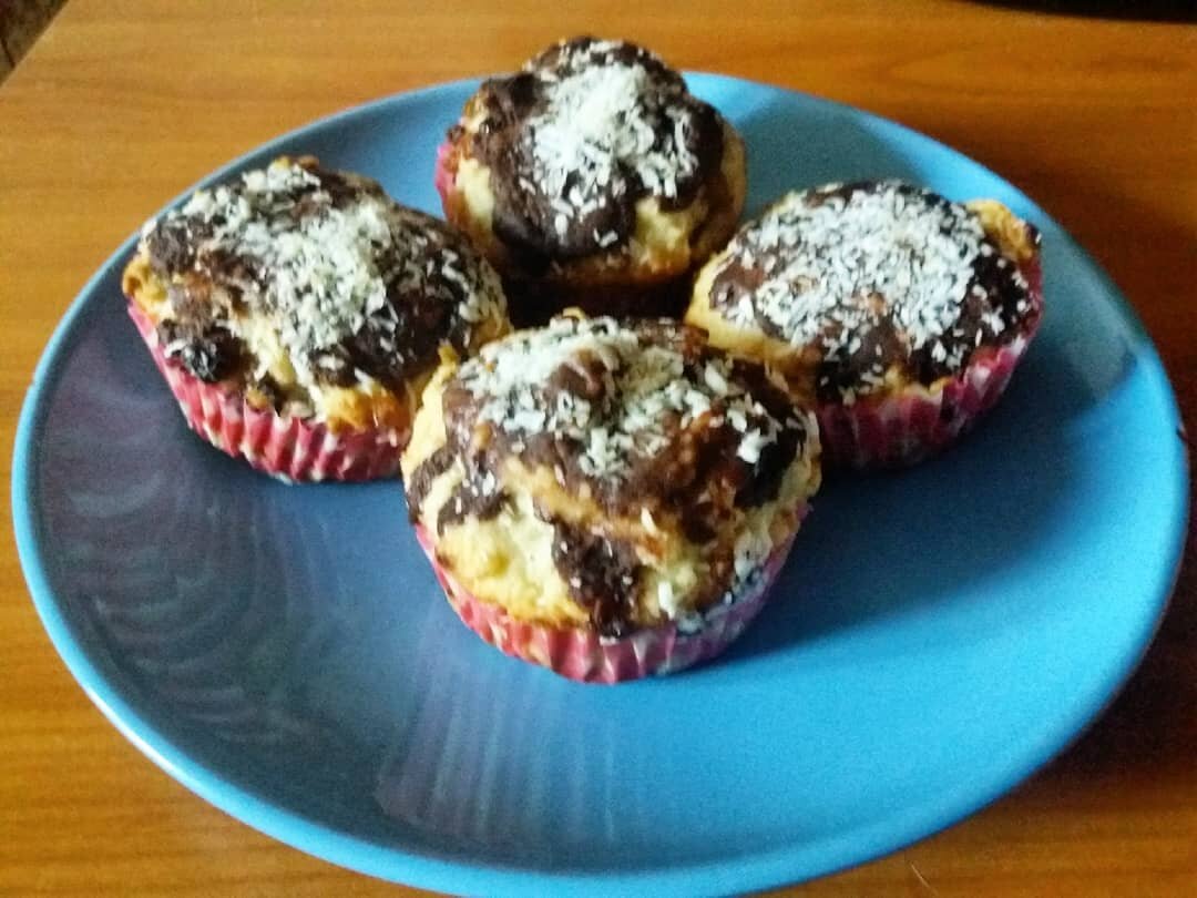 Я почти год хотела, и наконец я это сделала. Кексы получились довольно вкусными и необычными. Кексы: - 100/150 г сливочного масла (комнатной температуры); - 3/4 стакана сахара; - 150г сметаны; - 1 стакан молока; - 2 ч.л. разрыхлителя; - щепотка соли; - 2,5 стакана муки; - 2 банана (или другой фрукт на ваш вкус); - горсть изюма (по желанию). Глазурь: - 100г сливочного масла; - 2 ст.л. какао или кэроба; - ванилин; - 2-3 ст.л. сметаны или сливок; - 2-3 ст.л. сахарной пудры; - кокосовая стружка для украшения. В следующий раз планирую сделать их с кефиром вместо молока. Напишу и про этот опыт. Взбейте сахар и сливочное масло. Потом добавьте все остальные ингредиенты и взбейте. Разогрейте духовку до 180 градусов. Положите в форму для кексов. Разровняйте, чтобы тесто было равномерно распределено по форме. Выпекайте в течении 30-35 минут. Ингредиенты для глазури разогрейте вместе в кастрюле, доведите до однородного состояния. Слегка остудите. Покройте глазурью кексы и посыпьте сверху стружкой.