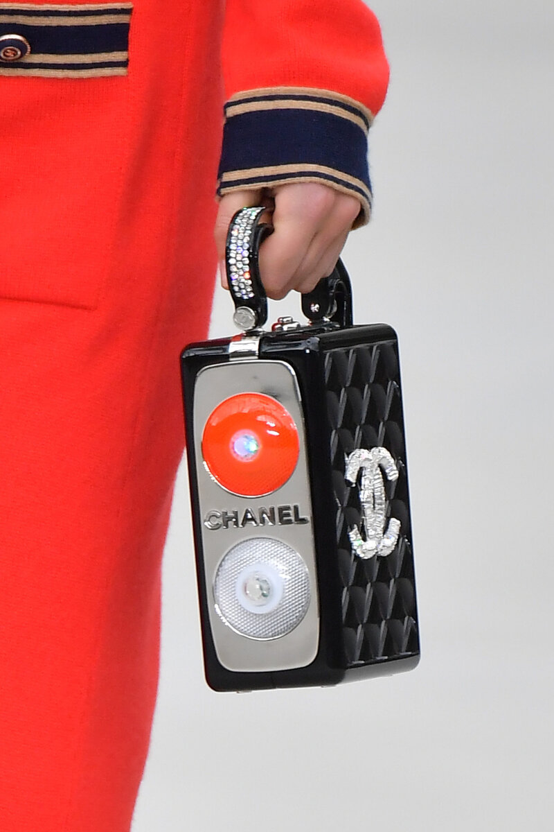 Прошел первый показ Chanel под руководством креативного директора Виржини Виар. Рассмотрим интересные детали показа и лучшие на мой субъективный взгляд образы. Сумки в виде различных предметов уже классика Chanel, на этот раз сумка приняла форму фонаря. Показ проходил в декорациях вокзальной станции, отсюда отсылки к рабочим в виде косынок и темных тонов. Мрачную осень нам предлагают разбавлять неоновыми аксессуарами, например перчатками. Велосипедки не сдают своих позиций, принимая все новые виды. Теперь они переросли в шорты до колен. Этот образ выглядит потрясающе: лацканы на рубашке, используемые не в морском образе, в сочетании с кожаными кюлотами просто покоряют меня.
