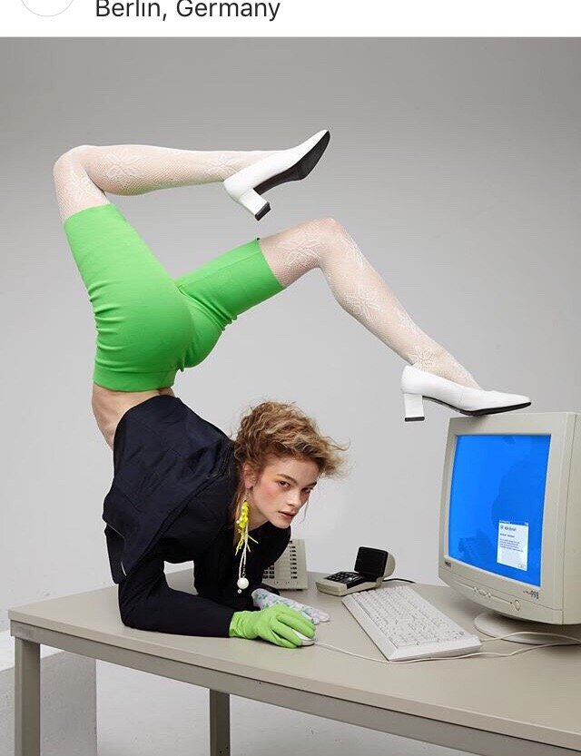 енто, если что, не я на фото, вы со мной еще не знакомы (если в мой инст не заходили, конечно) иностранцы для меня всегда отличались своей мозговитостью, не стандартным подходам к обычным вещам, творческим процессом. даже за компьютером они сидят/стоят интересно да, долгое время так будет сидеть/стоять неловко, зато модно, стильно и для спины полезно. а как хороша цветовая палитра салатовый (самый модный цвет для меня с самого рождения), черный и белый (классика на все времена), а голубой экран создает целостность фотографии вообще обожаю как выглядит тотал-блэк (или тотал-вайт) с каким-то ярким элементом, будь то зеленые носки, красные шнурки или желтый пояс. к чему я все это пишу. хочу поучаствовать в конкурсе от чумы вечеринки "ряженые" "почему нет, конечно участвуй, не смотри на то, что ты из поселочка архангельской области, население в котором чуть выше 12 тысчонок. главное, что ты нашла стиль, а стиль нашел тебя, не даром же все родственники советуются с тобой, какую шмотку