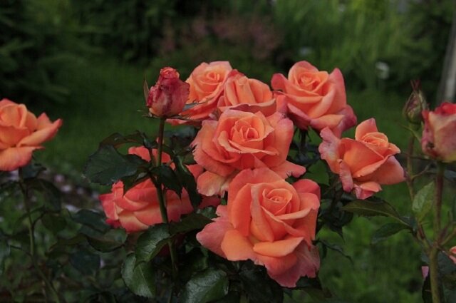 Ничем не уступают в красоте и окраски желтых тонов, с оттенком оранжевого. Такие розочки смотрятся очень красиво, наполняют сад жизнерадостностью.