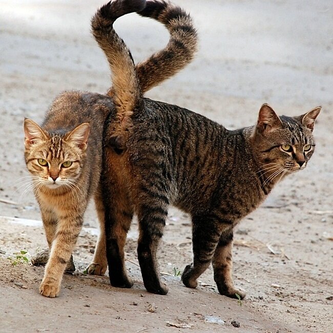 Хоть и кошки не умеют разговаривать, но запросто могут показать чего они хотят, свое настроение и отношение к происходящему вокруг них. Каждый хозяин должен выучить язык кошек, чтобы понять, здорова ли ваша кошка, нуждается ли она в помощи и что она хочет. Хвост Огромную роль в общении с вашим любимцем играет хвост. По положению хвоста кошки ее настроение. Так, например, если хвост кошки находится в вертикальном состоянии, так сказать «трубой», то это значит, что ваша кошечка довольна и дружелюбно настроена. Хвост в виде дуги также говорит о своем дружелюбном расположении к вам. А если при этом она повернется к вам задом или начинает тереться о ноги, то это значит, что она выражает вам свое почтение и доверие. Если кончик хвоста кошки начинает двигаться, то это означает, что у кошки появился интерес к чему то, что происходит вокруг нее, а если же хвост кошки опущен вниз, то значит кошка устала и не хочет играть. По положению хвоста также всегда можно понять, когда ваша кошечка на