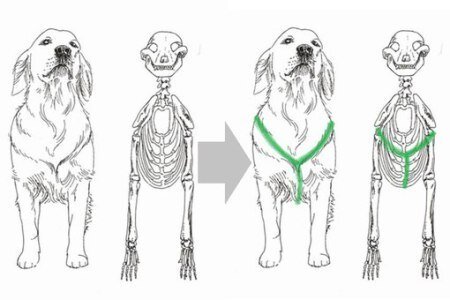 Лучше всего выбрать шлейку, передние ремни которой лежат по бокам шеи собаки, на грудине в виде буквы Y. Подгонять шлейку нужно таким образом, чтобы соединение ремней приходилось на то место, где сходятся лопатки и начинается грудная кость. Это место легко определить, просто пощупав собаку :) Главное — соединение ремней не должно лежать выше, на незащищенной шее животного.