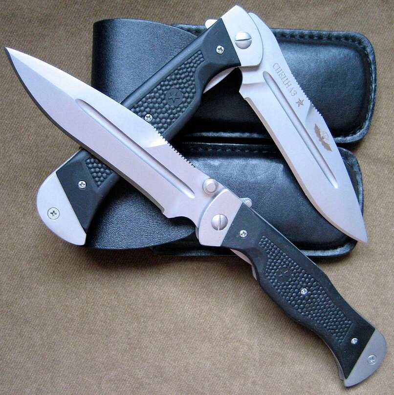 Складной нож спецназ представляет собой последователя таких знаменитых своих собратьев, как «офицерского» и «командирского» ножа, в тоже время является незаменимым приобретением для тех, кто ценит холодное оружие. Складной нож спецназ сегодня имеет много разновидностей, которые отличаются качественными материалами и неограниченным сроком использования. К нему стоит зачислить и модель - нож мелита спецназ. Данный нож, благодаря своему клинку, очень похож на боевой «антитеррор». Его рукоятки имеют пластиковые накладки. Кроме того, мелита производится с применением антибликовой обработки непосредственно поверхности. Складной нож спецназ мелита выпускается в комплектации кожаных ножен. В длину этот складной представитель спецназовского оружия достигает не менее двадцати пяти сантиметров, из которых на клинок припадает одиннадцать с половиной сантиметров. Что же касается ширины, то она составляет около двух с половиной сантиметров. В тоже время обух имеет толщину в три с половиной миллиметр