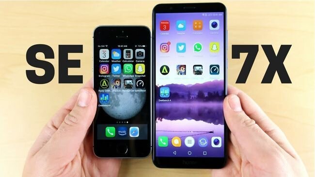 Сравним 2 телефона honor 7х и iPhone SE Технические характеристики Хонор 7х МодельHonor 7X, BND-AL10, BND-TL10Дата анонса/начала продажоктябрь 2017 / октябрь 2017Размеры156.5 x 75.3 x 7.6 мм.Вес165 г.Цветовая гамма корпусаЗолотой, синий, красный и черныйКоличество и тип SIM-картHybrid Dual SIM (Nano-SIM, dual stand-by)Операционная системаAndroid 7.0 (Nougat)Стандарт связи в 2G сетяхGSM 850 / 900 / 1800 / 1900 — SIM 1 & SIM 2 CDMA 800 & TD-SCDMAСтандарт связи в 3G сетяхHSDPA 850 / 900 / 2100Стандарт связи в 4G сетяхLTE band 1(2100), 3(1800), 5(850), 8(900), 38(2600), 39(1900), 40(2300), 41(2500)ДисплейТип экранаLTPS IPS LCD емкостный, 16 млн цветовРазмер экрана5.9 дюймовРазрешение экрана1080 x 2160, 407 ppi, соотношение сторон 18:9MultitouchестьЗащита экранаCorning Gorilla GlassЗвук3.5mm jackестьFM-радиоестьДополнительноDTS audio, Вибрация, MP3, WAV мелодииПередача данныхUSBmicroUSB 2.0Спутниковая навигацияGPS (A-GPS), GLONASS, BDSWLANWi-Fi 802.11 b/g/n, Wi-Fi Direct, hotspotBlueto