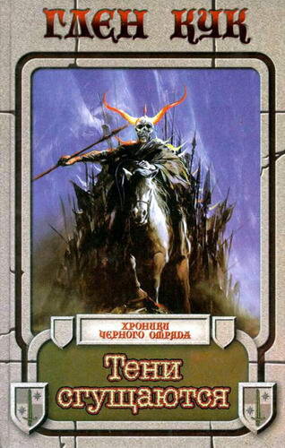 "Тени сгущаются" - второй роман из десяти в серии американского автора Глена Кука про Чёрный Отряд. Но именно в этой книге сам отряд появляется ближе к финалу, а весь сюжет романа построен вокруг личности трактирщика Маррона Шэда. На английском его имя смахивает на "ослиное д...мо" и это неспроста.