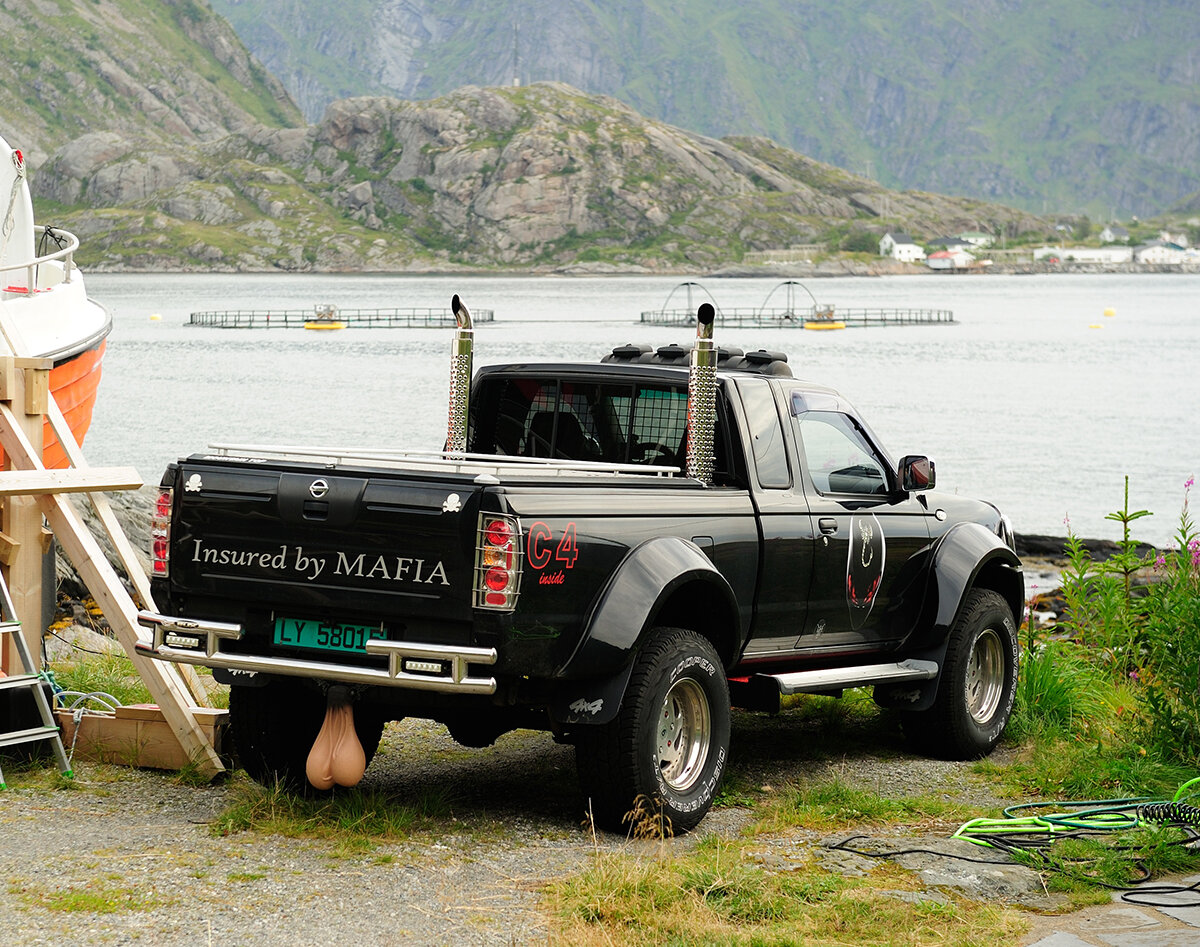 У меня бегут года, Будет и семнадцать... Как ПОНТЫ КИДАТЬ тогда, Чем мне ВЫДЕЛЯТЬСЯ? Пятничная юмореска на тему трудности бытия норвежских "чОтких пасанов на раЕне". Буду рад дополнениям в комментариях. Как же бедному несчастному норвежскому автопацанчику показать себя? Не всё так просто здесь. Классические способы не всегда могут сработать. Итак, начнём по порядку))) 1 - "Спортивная" насадка на выхлопную трубу +20% к скорости, ну куда её тут примудришь, с такими почти пароходными трубами? 2 - Собака, качающая головой на торпеде, корона перед рулём, меховой руль +25% к маневренности и реакции водителя, но никто же со стороны не заметит. А в машину много не посадишь. Печаль... 3 - Глухое тонирование машины. Тем более, она чёрная! НО! До первого полицейского. Остановит, и такого штрафа пропишет, что надолго расхочется за руль садиться. Ах, денег нет? А конфискация имущества в счёт штрафа? Нищий безработный, ещё и тачка не твоя? Может, ты и могилу свою на имя жены запишешь? Ну, присядь, п