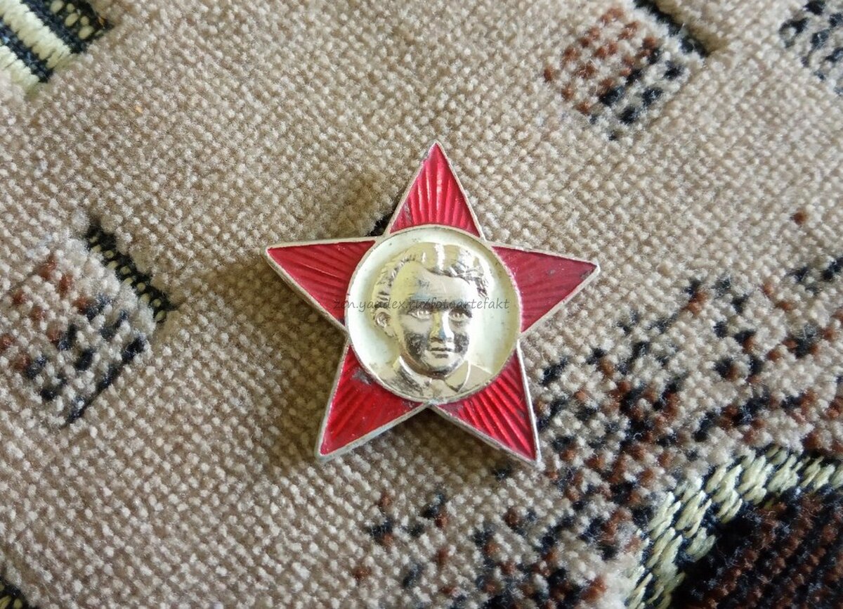 Несколько раз приносили мне октябрятские звездочки. "На, купи, они же сегодня считаются редкие" - говорят мне. А где редкие, почему редкие? Непонятно. Все же знают, что в советское время каждый год в октябрята принимали миллионы детей. И у каждого была своя октябрятская звездочка. А сколько их было почти за десятки лет советской власти. Наверняка и у вас был вот такой алюминиевый значок: Еще были пластиковые с фотокарточкой вожди, но я таких раньше не видел. Может быть их просто не было в нашей местности. Алюминиевый значок имеет очень просто оформление. Небольшая пятиконечная звездочка, где лучи имеют "рубиновый" цвет. В центре в круге изображен портрет Ульянова Владимира в детстве. Портрет выполнен в золотистом цвете. На оборотной стороне указана цена в 10 копеек. Честно, не помню - нужно ли было самому покупать значок на вступление в октябрята, или же его давали "старшие товарищи". Значок мог вполне потеряться, так как конструкция его крепления в виде булавки была очень хилая. За