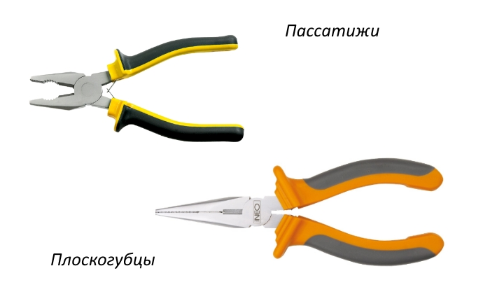 Различия этих инструментов заключаются в форме губок. У плоскогубцев они более вытянутые и тонкие. А у пассатижей более широкие и короткие.