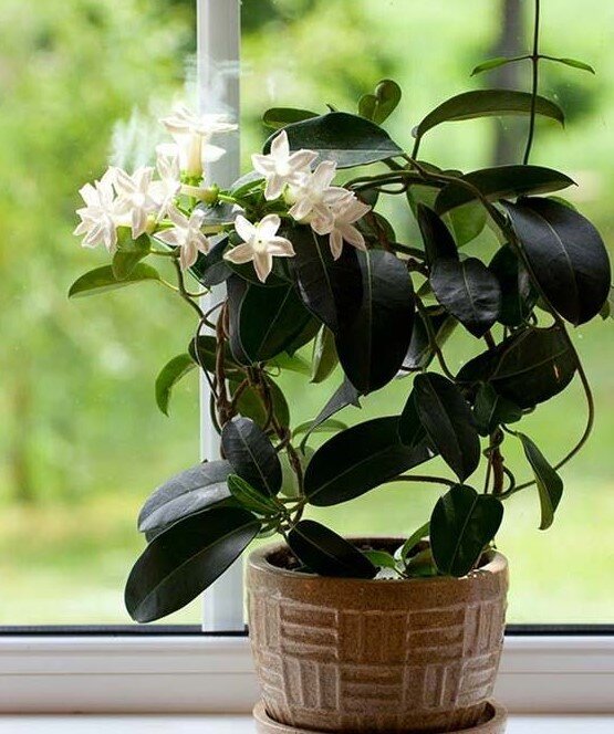 Стефанотис или мадагаскарский жасмин любимый цветок многих цветоводов. Но, не смотря на то, что его легко вырастить из черенка, в уходе можно столкнуться с некоторыми трудностями и неожиданностями. Первый стефанотис попал ко мне в плачевном состоянии с распродажи. Цена была смехотворная и чтобы спасти растение я решила нарезать его на черенки, так как корневая была полностью гнилая. Укореняла разными способами. Первыми проявили признаки новой жизни (показались корни) те черешки, которые стояли в воде до образования на стволе каллюса (белого налета). После чего они были пересажены в торф с перлитом. По поверхности грунта я рассыпала порошок «корневин», чтобы с водой при поливе он проходил к растению. Через месяц стали виднеться корни, которые быстро набирали силу и подрастали. Вскоре черенок был пересажен в горшок. Растение не переносит переувлажнения. От постоянно «мокрых ног» начинают желтеть и облетать листья. Ему необходимы незначительные просушки почвы, поэтому хотя бы на день