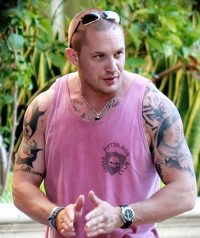 В наше время татуировками уже мало кого удивишь, но ещё совсем недавно они не были мейнстримом. В любом случае, татуировка может многое сказать о человеке. Селебрити очень любят эпатировать публику, в том числе и татуировками. Том Харди – известный британский актёр, который снялся во многих кинокартинах. Его тело практически полностью покрыто татуировками! И чего там только не найдёшь – маски, звёзды, дракон, крылатые фразы и даже сама Дева Мария. Сразу видно, что человек разносторонний! Знаменитый американский актёр Бен Аффлек тоже любит покрывать своё тело татуировками. Он любит большие, даже гигантские, и в обязательном порядке цветные тату – такие, чтобы было заметно издалека! На фото прекрасно видно его огромную татуировку на всю спину, где красуется какое-то мифическое существо, по-видимому, дракон. А что насчёт женственной и обаятельной Анджелины Джоли? Неужели она тоже заядлая любительница татуировок? Да, всё верно. Правда, татуировки у неё не совсем обычные. На её спине наби