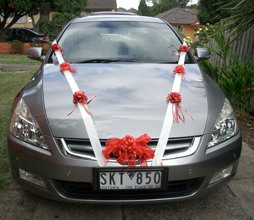 Иногда небольшая деталь на капот способна заменить остальные изыски. Такой стиль называют "просто и со вкусом". Подготовить автомобиль в данном ключе можно атласными или обычными лентами.