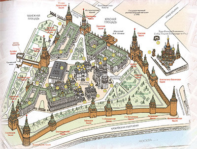 История кремлёвских башен началась в 80-е годы XV столетия, когда государь всея Руси повелел обновить цитадель. Тогда же были призваны итальянские зодчие – лучшие строители в Европе. В итоге башен — 20. Из них 19 были возведены в период с 1485 по 1516 год. Ещё одна, небольшая башенка Царская, появилась в 1680 году. К этому времени уже сложился единый архитектурный стиль Кремля. В 1624 году над Спасской башней поднялся первый шатровый верх. Постепенно нарядными шатрами, смягчавшими изначально суровый вид, украсились и остальные башни. На протяжении столетий кремлёвские башни меняли названия, разбирались, вновь восстанавливались, что-то добавляли в свой неповторимый облик, каких-то элементов лишались. Угловые башни В углах неправильного треугольника, образованного крепостными стенами, были возведены башни цилиндрической формы. Водовзводная башня – юго-западная вершина треугольника и одна из пяти кремлёвских башен, увенчанных звёздами. В старину именовалась Свибловой – по бл