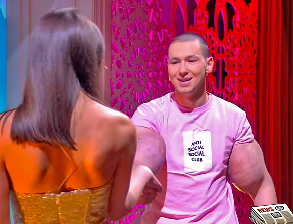 Когда Руки-базуки вышел на сцену и представился перед девушкой. Кирилл стразу же включил "Альфача" и стал подкатывать к Екатерине не совсем