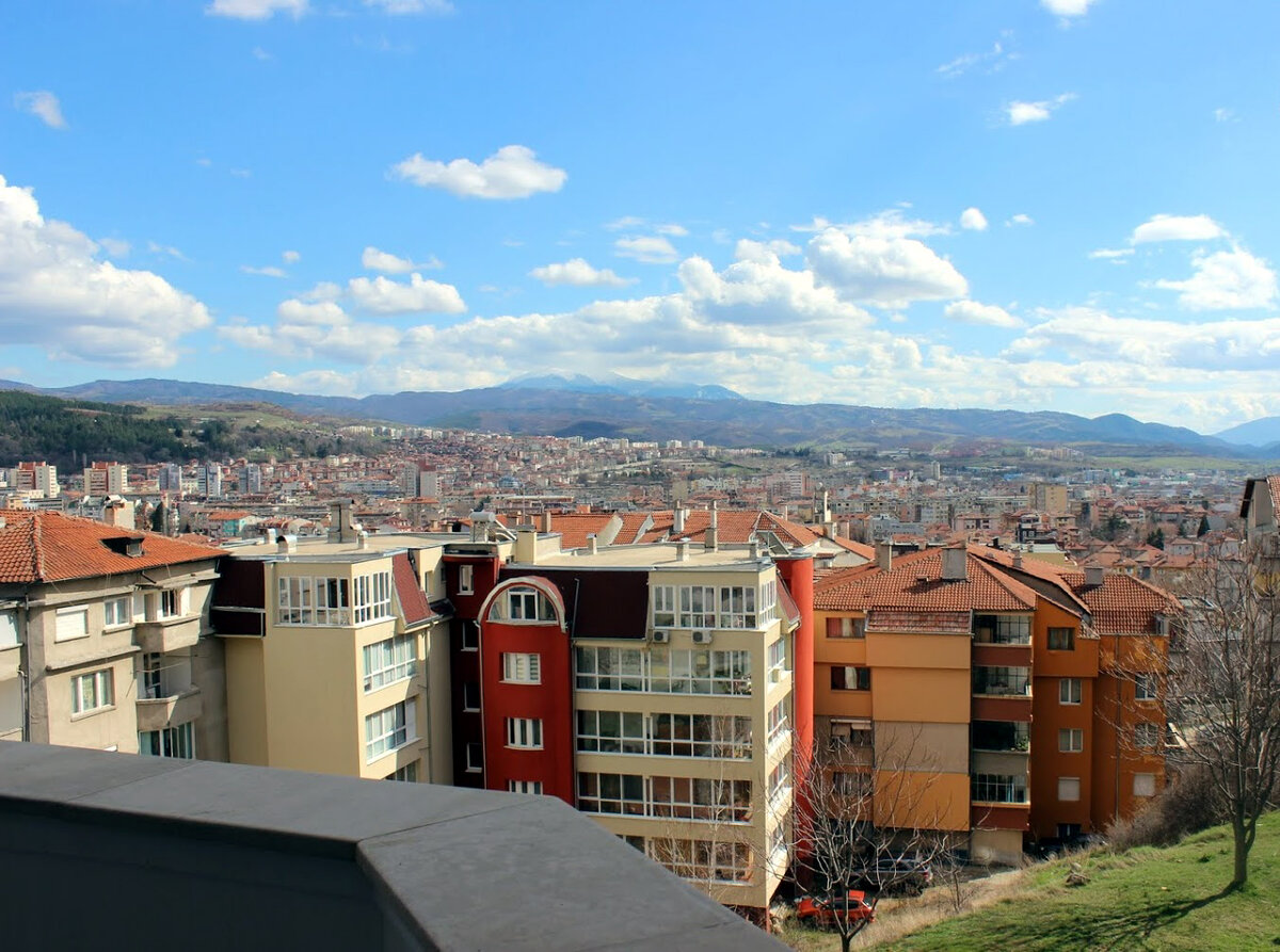 Конечно, в гористой местности не может не быть чудесных панорам (много хубава гледка - на болгарском это звучит так). Но красивый вид из окна может быть не только в селе, но и в городе, в домах, расположенных на возвышенных местах. Если вы выбираете, где поселиться (неважно, арендуете вы жилье или хотите купить), вы можете в своем запросе риэлтору или при самостоятельном поиске на сайте недвижимости поставить галочку в запросе - панорамный вид. И получите варианты предложений именно с красивыми видами. Но не вздумайте откликаться на подобные предложения заочно. Всё нужно видеть своими глазами. Потому что ситуации могут быть самые разные - например, приятно ли вам будет постоянно наблюдаться вот такую заброшку? А это просто одна из квартир, много лет стоит недостроенной, ничего в ней не изменится, она так и будет пугать вас своим видом. Другой вариант не очень удачного панорамного вида - примерно так, как на фото ниже. Да, мы видим горы, да, лесистые холмы. Но вот эти близкие холмы -