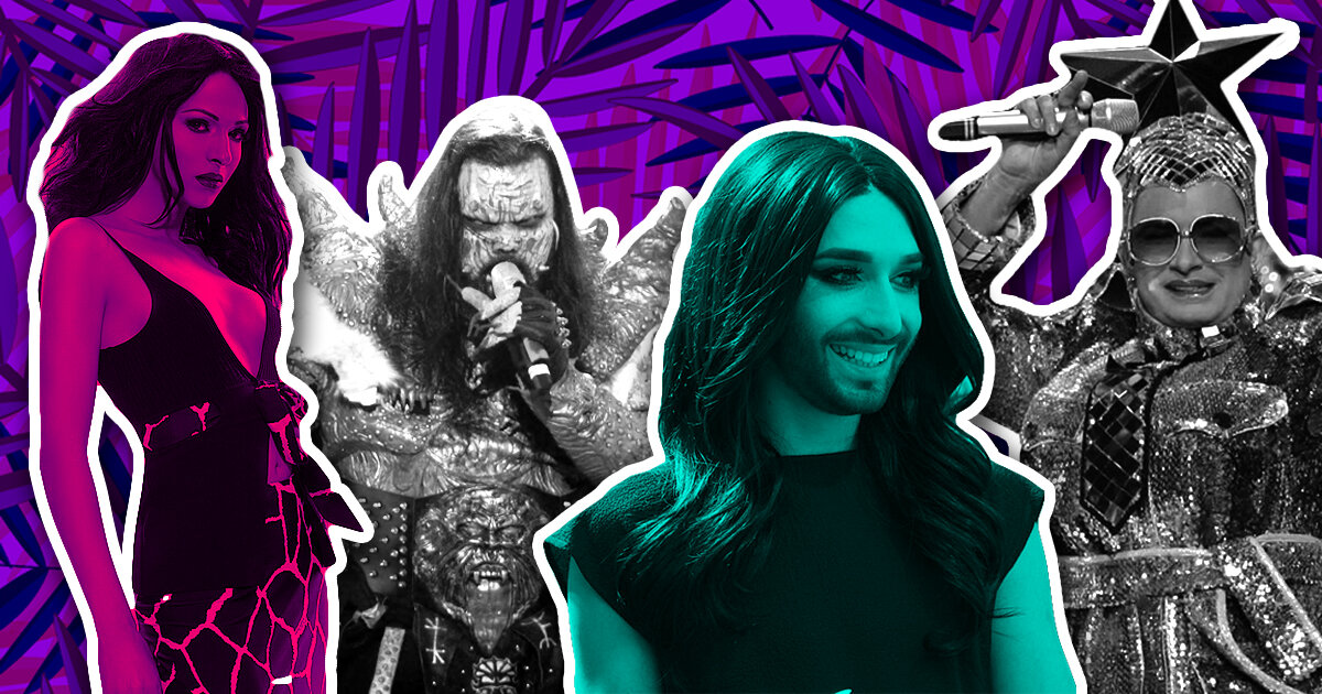 18 мая состоится финал ежегодного музыкального конкурса «Евровидение». В этом году самыми странными участниками стали ребята из Исландии — они выступают в латексе и шипах и поют про ненависть. Они не первые необычные участники конкурса — в истории «Евровидения» были и трансвеститы, переодетые в стюардесс, и поющий индюк, и трансгендер из Израиля.