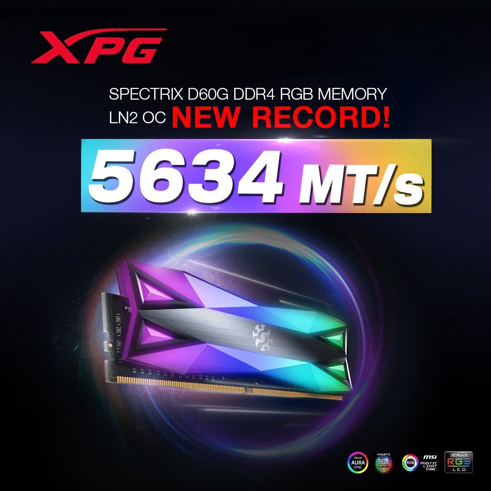 ADATA Technology, ведущий производитель высокопроизводительных модулей памяти, сегодня объявил о том, что подразделению компании, XPG Overclocking Lab, удалось разогнать модуль памяти SPECTRIX D60G RGB DDR4 до частоты 5634 МТ/c, поставив новый мировой рекорд. Прошлый рекорд составлял 5608 МТ/c. Разгон осуществляли на процессоре Intel Core i9, материнской плате MSI MPG Z390I GAMING EDGE AC и системе охлаждения с жидким азотом. Результаты разгона были официально сертифицированы и опубликованы на HWBOT. Стоит отметить, что модули D60G созданы из высококачественных чипов и обладают металлическим теплоотводом, обеспечивающими отличную целостность сигнала, надежность, стабильность и долгий срок службы. Модель также оснащена Intel Extreme Memory (XMP) 2.0, что позволяет пользователям с невероятной легкостью настраивать параметры памяти, причем не по отдельности в BIOS, а прямо в операционной системе. Кроме того, D60G отличаются наибольшим количеством RGB-подсветки на квадратный миллиметр (60%