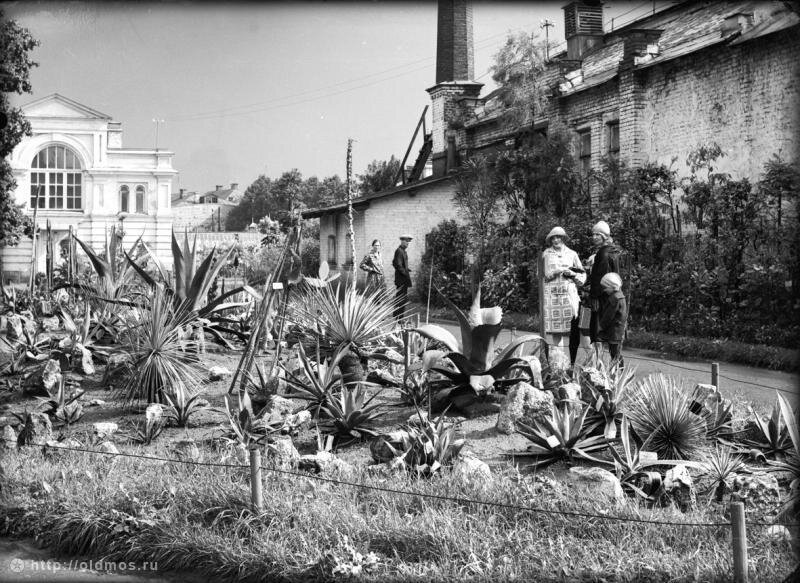 Эта фотография сегодня относится к историческим. На ней фотограф запечатлел летнюю экспозицию суккулентов недалеко от субтропической оранжереи в знаменитом и известном многим Аптекарском огороде.