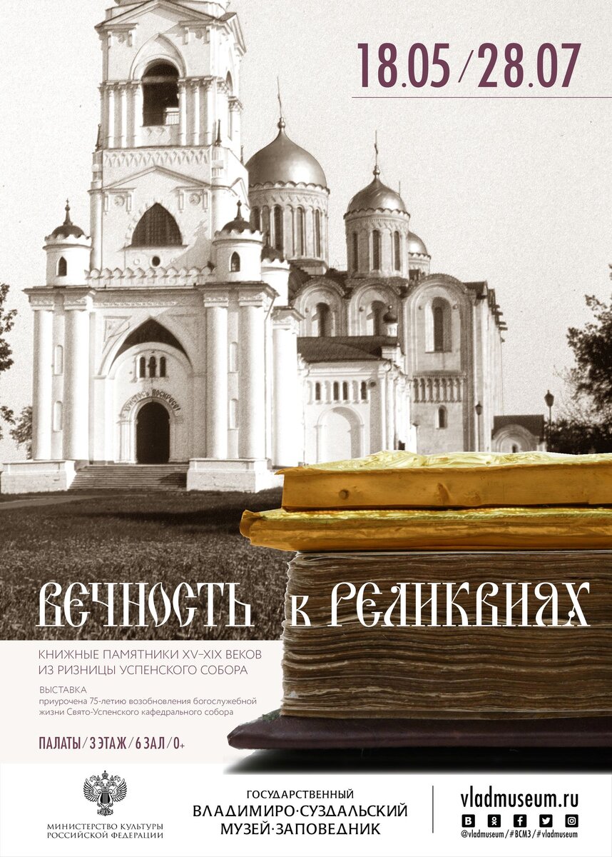 На выставке представлено 19 книжных памятников XV—XIX веков, хранящихся во Владимиро-Суздальском музее-заповеднике. Все они происходят из ризницы Успенского собора и являют собой зримое свидетельство многовековой плодотворной деятельности соборного скриптория и библиотеки.
