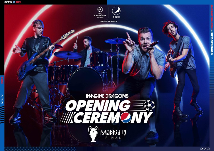 На церемонии открытия финала Лиги чемпионов УЕФА, представленной компанией Pepsi, в этом году в Мадриде выступит группа Imagine Dragons. Исполнители таких хитов, как Believer, Radioactive и Thunder, сыграют 1 июня на стадионе "Метрополитано" прямо перед решающим матчем турнира. "Мы польщены, что сыграем на церемонии открытия финала Лиги чемпионов УЕФА от Pepsi для самых страстных болельщиков в мире. В Мадриде будет потрясающее шоу", - сказал лидер группы Дэн Рейнольдс. Финал покажут в прямом эфире в 200 государствах и территориях по всему миру. Imagine Dragons выйдут на поле за десять с лишним минут до главного матча сезона в европейском клубном футболе.