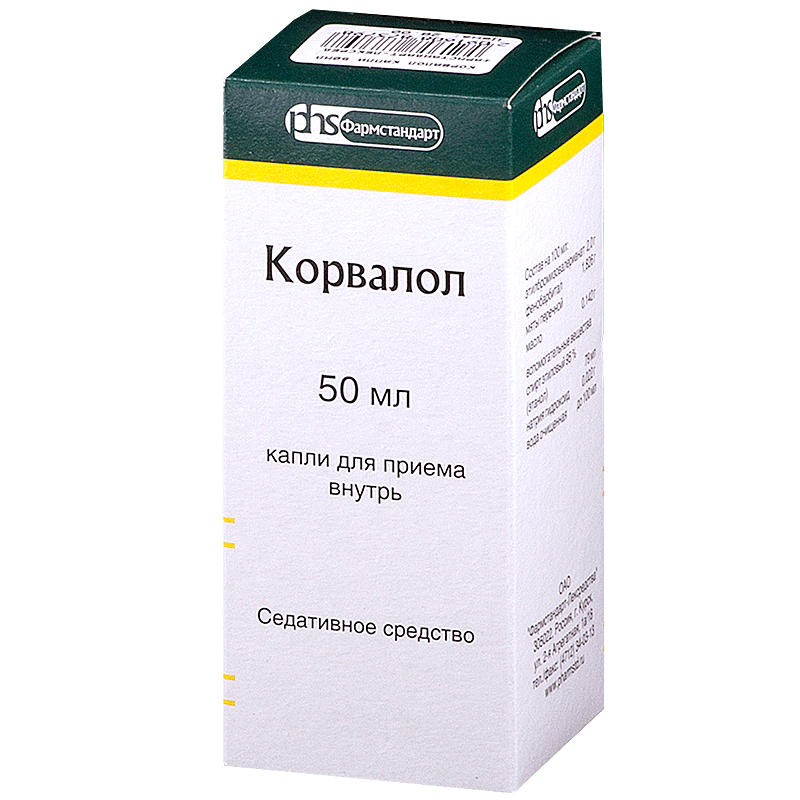 Корвалол — успокаивающий, седативный препарат на основе ментола, этилового эфира α-бромизовалериановой кислоты и фенобарбитал. Выпускается в виде капель и таблеток для приема внутрь, а так же под язык. Производные барбитуровой кислоты и, прежде всего, фенобарбитал, до недавнего времени были основными в лечении эпилепсии, однако сейчас не относятся к препаратам первого ряда из-за выраженного успокаивающего (седативного) действия. Тем не менее, данный препарат входит в список важнейших лекарственных средств Всемирной организации здравоохранения[1], а также в перечень жизненно необходимых и важнейших лекарственных препаратов, утверждённый распоряжением Правительства Российской Федерации от 07.12.2011 № 2199-р.(2). Кстати входящий в состав Фенобарбитал запрещённый во всех развивающихся странах кроме России по причине того что является наркотическим средством. Со всеми вытекающими например: зависимостью, синдромом отмены - очень весёлая вещь кстати всем советую , пагубным влиянием на се