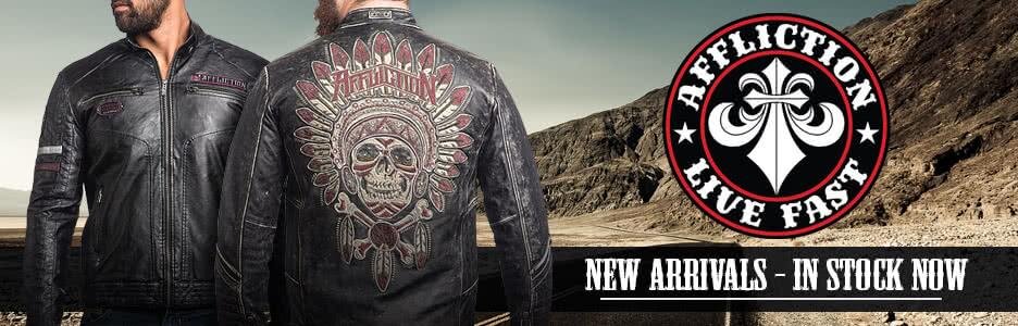 Также в байкерском стиле изготавливаются куртки Affliction – далеко не все они повторяют классический крой «косухи», но направление выдержано в лучших традициях: толстая кожа, тиснение, крупные надежные швы. Есть также джинсовые и текстильные куртки, они немного проще, но также сделаны в фирменном стиле бренда.