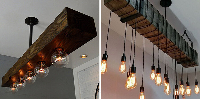 – этим недостатком страдают многие кухни даже в новостройках. Ну, нет у наших проектировщиков тяги к большим оконным проёмам! В этом случае сразу же напрашивается простое изящное решение - изготовление небольшой подвесной балки из массива, на которую можно установить оригинальные «винтажные» фонари с латунным корпусом. При этом не стоит беспокоиться о маскировки провода – открытая проводка сегодня легко вписывается в модные интерьерные тренды.