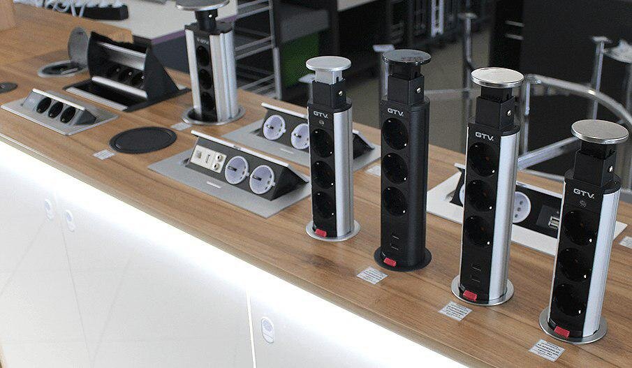 Встроенные розетки в столешницу — это современное и стильное решение, которое может быть действительно полезно. Чаще всего их предлагают применять на кухнях с так называемым островком (когда часть мебель установлена без привязки к стенам). Однако, встроить блоки розеток можно в любую столешницу, не обязательно именно кухонную. На кухне розетки лучше заранее спроектировать на стенах, ведь встраиваемые блоки требуют часть полезного пространства под столешницей. Встроенные розетки в столешницу позволяют органично добавить их в том месте, где они не были изначально запланированы. Альтернатива этому — удлинители, которые совсем не вписываются в дизайн любого современного ремонта. Другое полезное применение таких розеток это тумба для телевизора. Если место для ТВ зоны не было подготовлено заранее, то блок встроенных розеток — лучшее решение, чтобы не устраивать спагетти из проводов и удлинителей. Абсолютно также ситуация обстоит и с рабочим местом, где используется компьютер или ноутбук.