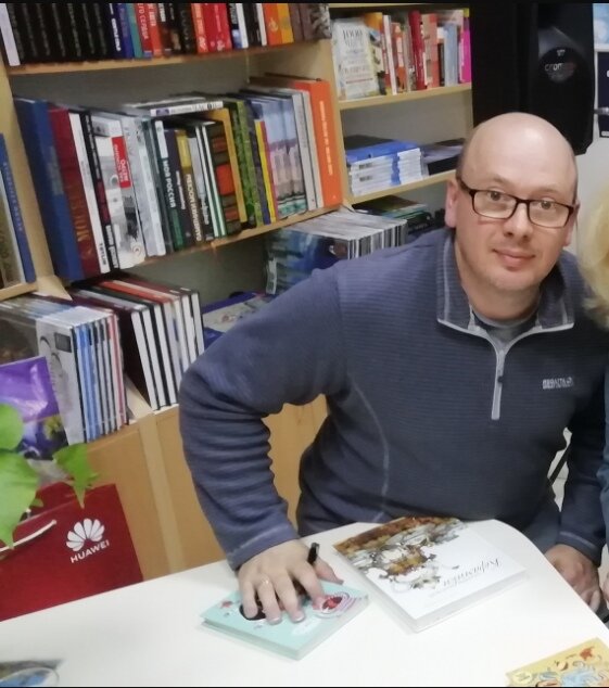 Во-первых, объявленная в минском магазине Академкнига встреча с автором, не побоюсь этого слова, бестселлеров Славой Сэ выглядела действительно внезапной и ни к чему не приуроченной. Маленькое объявление на дверях тоже ничего не предвещало. Особенно в сравнении с другими афишами, которые выглядели практически, как постеры блокбастеров. Но внутри на нас сразу же напрыгнула проза жизни.