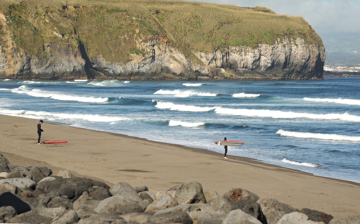 Азорские острова находятся в центре Атлантического океана, что идеально подходит для занятий сёрфингом - потому что волны здесь есть круглый год! От 4,5 метров зимой и до 2 метров в течение лета. Ветра благоволят островам, предоставляя отличные условия даже для самых активных экстремалов. Именно поэтому на Азорских островах ежегодно проходят этапы мировых соревнований по сёрфингу. Городок Рибейра-Гранде расположен на Северной стороне острова Сан-Мигель, в 15 км от международного аэропорта. Это уютное прибрежное поселение является прекрасным местом для сёрфинга и имеет один из лучших пляжей Азорских островов. Пляж достаточно широкий и длинный, поэтому вам не будут мешать другие отдыхающие. Вы наверняка увидите как заядлых сёрфингистов, многие из которых - местные ребята, так и новичков, только пытающихся покорить очередную волну и встать на доску. На этом же пляже находится и одна из лучших на острове школ сёрфинга, где вы сможете пройти обучение и взять в аренду подходящую доску (