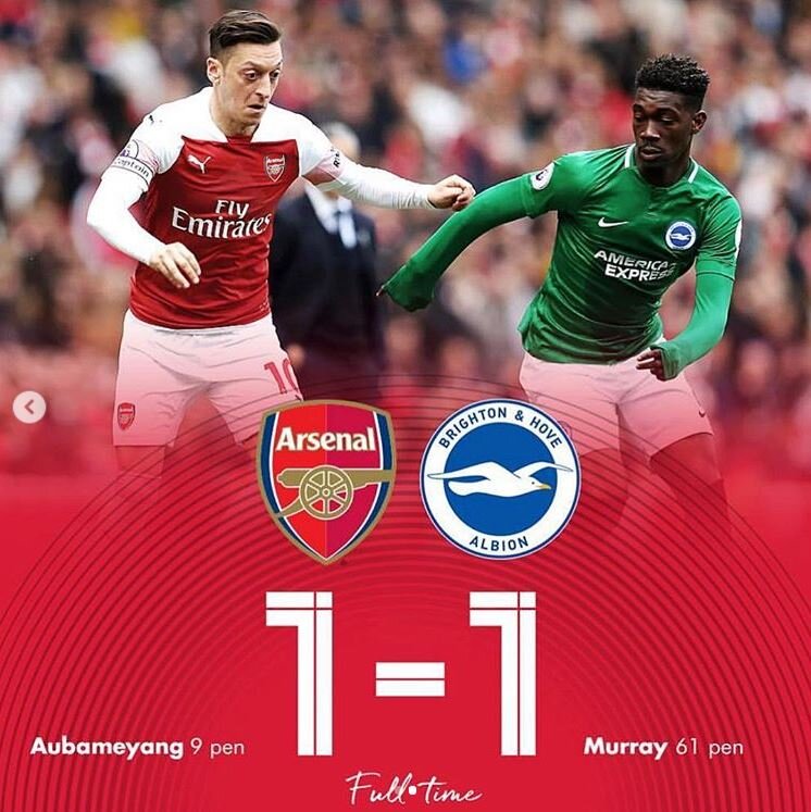 Сыграв с "Брайтоном" вничью 1:1, "Арсенал" лишился реальных шансов на место в топ-4 Премьер-Лиги.
