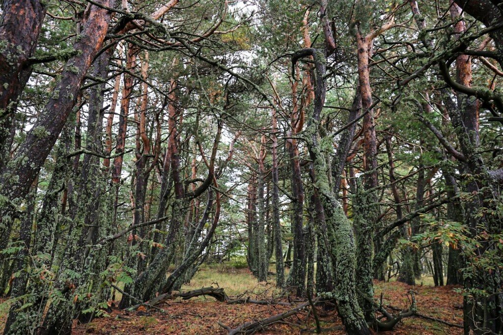 Высота этих красавцев достигает пятнадцати метров, а обхватить руками некоторые деревья вообще невозможно. Обязательно проведайте старожила и «белую ворону» рощи – сосну-«самолет». Источник фото Она так названа благодаря своей флагообразной форме. Сосна считается настоящим природным памятником Крыма ещё и из-за своего возраста – дереву исполнилось уже более трехсот лет.