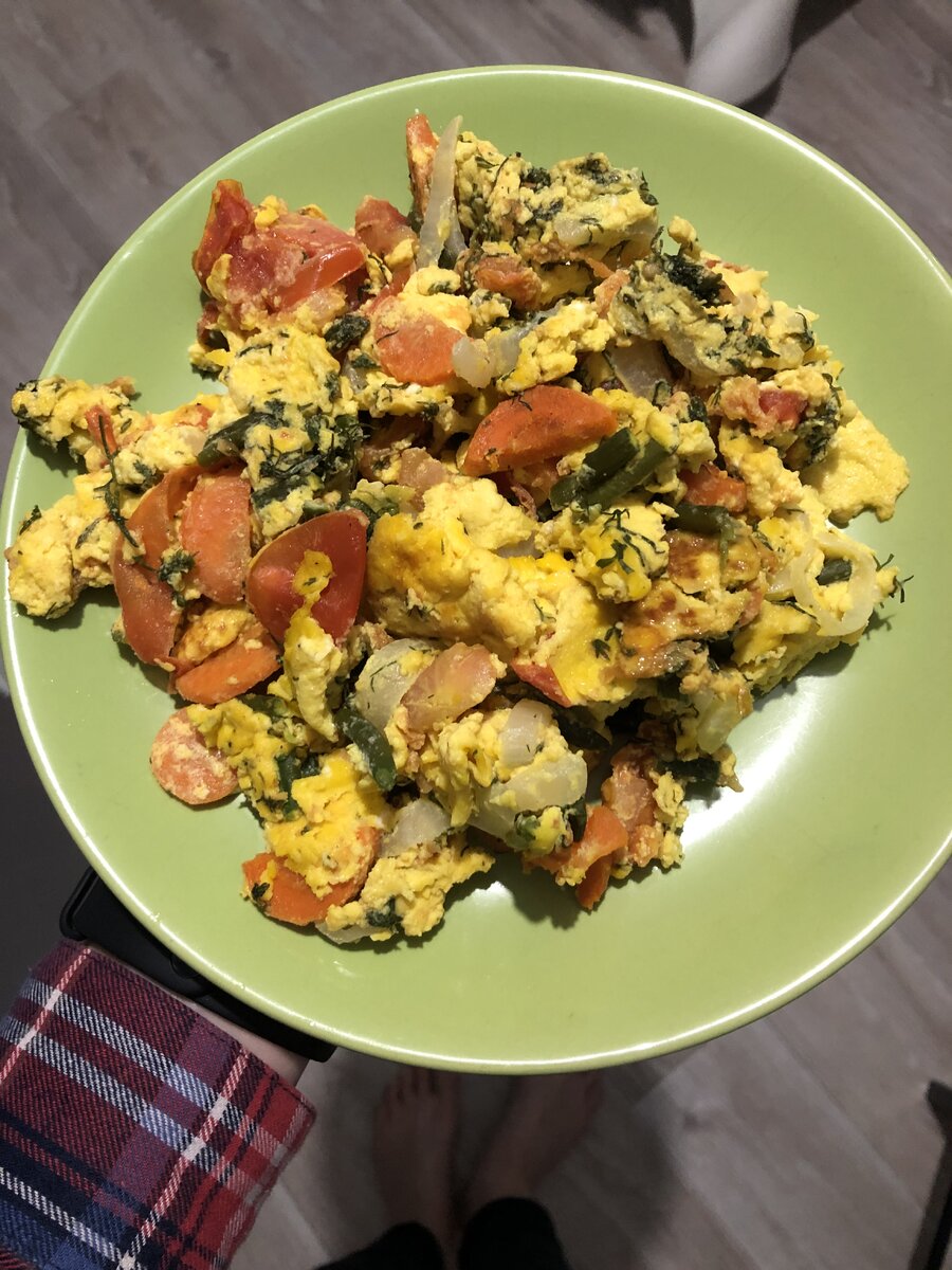 Нет ничего более лёгкого, чем приготовление этого блюда) этот рецепт лично мой, по этому вы не найдёте его больше нигде❤️ Скриньте, готовьте и наслаждайтесь. Нужно: яйца морковка лук помидоры зелень овощи можно добавлять любые молоко/сливки готовка: на разогретую и смазанную маслом сковороду высыпаем нарезанную (не тереть, а нарезать ) морковку, у меня жарилось на 350 градусах, это где-то на половине огонь. Пока поджаривается морковка, нарезайте остальные овощи, и взбивайте яйца, в яйца добавьте немного молока либо сливок, так будет вкуснее, так же соль и специи я добавляю сразу в яйцо. Покамы всё это готовили наша морковка уже полу готовая, сверху высыпайте лук и перемешивайте. Немного дайте прожарится луку, потом добавьте остальные овощи, и через несколько минут сверху выливайте ваше яйцо. При жарке помешивайте всё лопаткой, когда яйцо полностью будет готово добавьте зелень⭐️ Можно подавать) приятного аппетита 😊 Подписывайтесь на канал, буду делиться с вами лёгкими и полезными