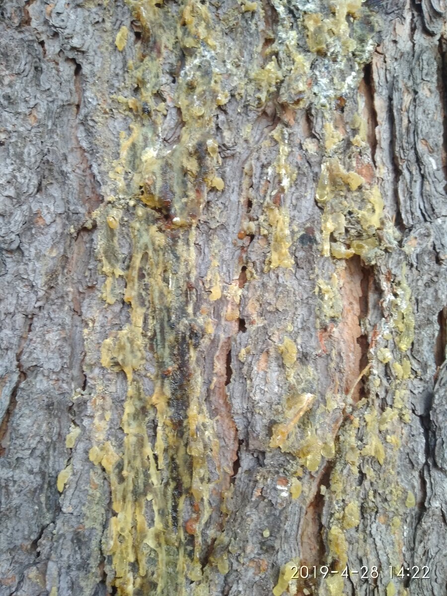 Я беру ножик, баночку с крышкой и резиновые перчатки (руки от живицы можно только оттереть маслом). Соскребаю её вместе с частичками коры.