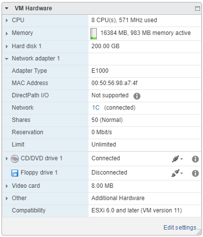 VMware Tools - бесплатный набор утилит для улучшения взаимодействия виртуальной машины и платформы VMware. Если у вас Windows Server, то рекомендую установить VMware Tools для смены сетевой карты на vmxnet3, меньше глюков. Как показала практика, другие сетевые карты работают не очень стабильно. Стандартный тип сетевого адаптера в vCenter 6.0 - E1000. После долгой эксплуатации на сервере начинаются проблемы - неожиданно пропадает сеть, хотя ОС показывает, что всё в порядке. Но пинги не идут. Помогает disable-enable сетевого адаптера, но для этого необходимо войти на сервер через консоль VMware. Также иногда помогает смена vlan сети, но не всегда. Если заменить сетевой адаптер на vmxnet3 никак нельзя, можно написать простой скрипт, который будет пинговать контроллер домена, и если шлюз недоступен, то передёргивать сеть на сервере. Проще изменить сетевой адаптер на vmxnet3. Но для этого необходимо установить VMware Tools, что мы и будем делать. vCenter показывает, если на сервере не стоит