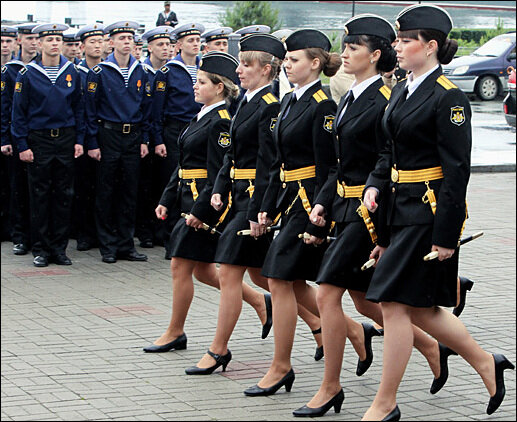 Нет, в такой обуви настоящий строевой шаг не отпечатаешь! И по различным трапам по боевой тревоге не побегаешь. Впрочем, до самого последнего времени доля оказаться в плавсоставе выпускницам наших военно-морских учебных заведений не грозила. И на берегу хватает должностей, которые могут замещаться офицерами-женщинами.