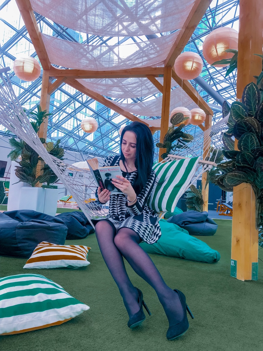 Доброе утро Сити-люди! Сегодня я хочу рассказать вам о настоящем зеленом оазисе в Москва-Сити! Возможно я буду не первым человеком от которого вы узнаете про прекрасный зеленый сад на 6 этаже ТРЦ Афимолл, но поделиться своим мнением с вами мне очень хочется, потому что попала я туда первый раз только пару дней назад Сразу хочу вам сообщить, что наслаждение описанное ниже абсолютно бесплатно для всех! Афимолл решил поддержать мировой тренд здорового образа жизни и организовал на 6 этаже под самой крышей пространство для «эко-отдыха» под названием Wellness and Beauty. Свежие зеленые цвета, искусственный газон, деревья, гамаки, лежаки, смузи и подушки!