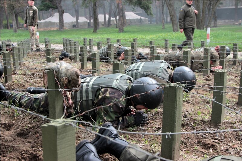 Сегодня первый раз мы бежали полосу препятствий в полной экипировке: каска, автомат, бронежилет 4-го класса (на минуточку это целых 13 кг), ну и, естественно, форма. Я не знаю, специально ли нам так поставили, или это стечение обстоятельств, но сегодня был самый жаркий день из всех, что уже были этой весной. Когда я в очередной раз полз под низкой колючей проволокой, то видел, как капли пота с моего лба капают вниз на песок. Будто кровь, когда голова пробита. (сори, если слишком жестокое сравнение, но оно самое подходящее и по виду, и по ощущениям).