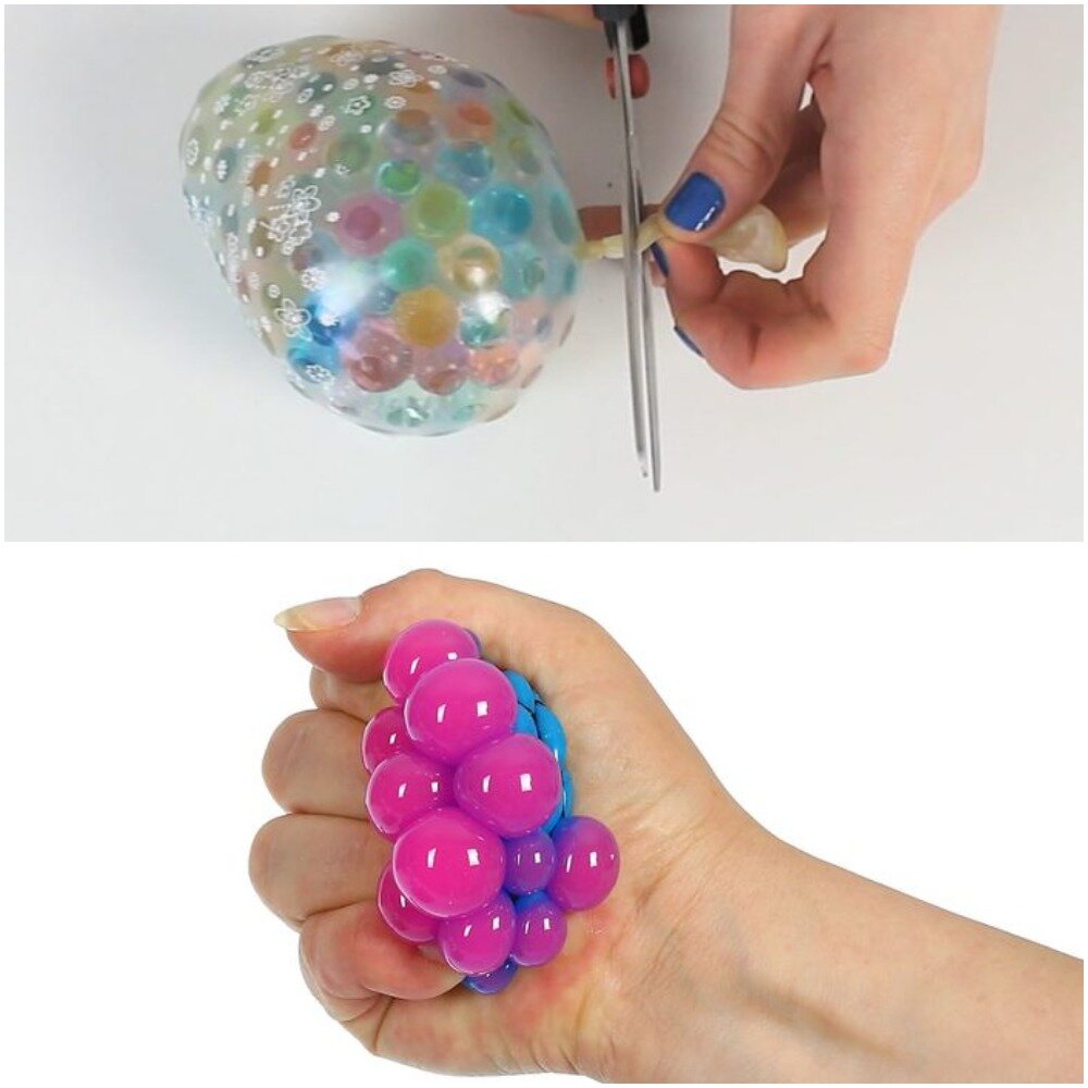 В жизни часто происходят ситуации, когда нужно успокоиться, перестать испытывать негативные эмоции... В таких ситуациях помогут игрушки против стресса. Они не только имеют приятный внешний вид, их можно сжимать. На ощупь такие игрушки максимально приятны. Соответственно, такие игрушки приятны и глазу, и рукам. Сквиши С английского языка слово squishy переводится как "мялка". Они бывают разных размеров и формы. Могут выглядеть как еда, какие-то приспособления или же не иметь особой тематики. Их особенность в том, что они приятно мнутся. Бывает три вида таких игрушек. Первый - резиновый, второй - похожие на лизунов, и третьи - наполненные гелем. Далее в статье мы напишем советы, которые помогут вам создать свою игрушку. Шар-антистресс Чтобы сделать шар, который будет позволять вам избавляться от стресса, нужно взять воду, прозрачный воздушный шарик и Orbeez. После этого насыпьте маленькие шарики в бутылку и пересыпьте в шарик. В шар стоит добавить муку и бумагу. Если хочется на шарике