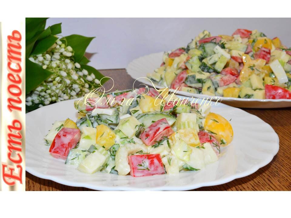 Салат "Весеннее настроение" с заправкой на основе йогурта - невероятно сочный и полезный, что обуславливается входящими в его состав овощами и зеленью. Пикантность блюду придает яблоко. А заправка на основе классического йогурта делает вкус более мягким. Ингредиенты: огурцы - 2 шт. перец болгарский - 1 шт. яблоко зеленое - 1 шт. сельдерей - 1-3 стебля, яйца вареные - 2 шт. зеленый лук , петрушка, укроп , соль . Заправка йогурт классический - 3-4 ст.л, масло растительное - 1-2 ст.л, горчица по вкусу , соль по вкусу , сахар по вкусу . Для заправки смешать все ингредиенты, отставить в сторону. Порезать овощи, очищенное яблоко и яйца кусочками желаемой формы, не мелко. Добавить резанную зелень и заправку, размешать. Приятного аппетита!