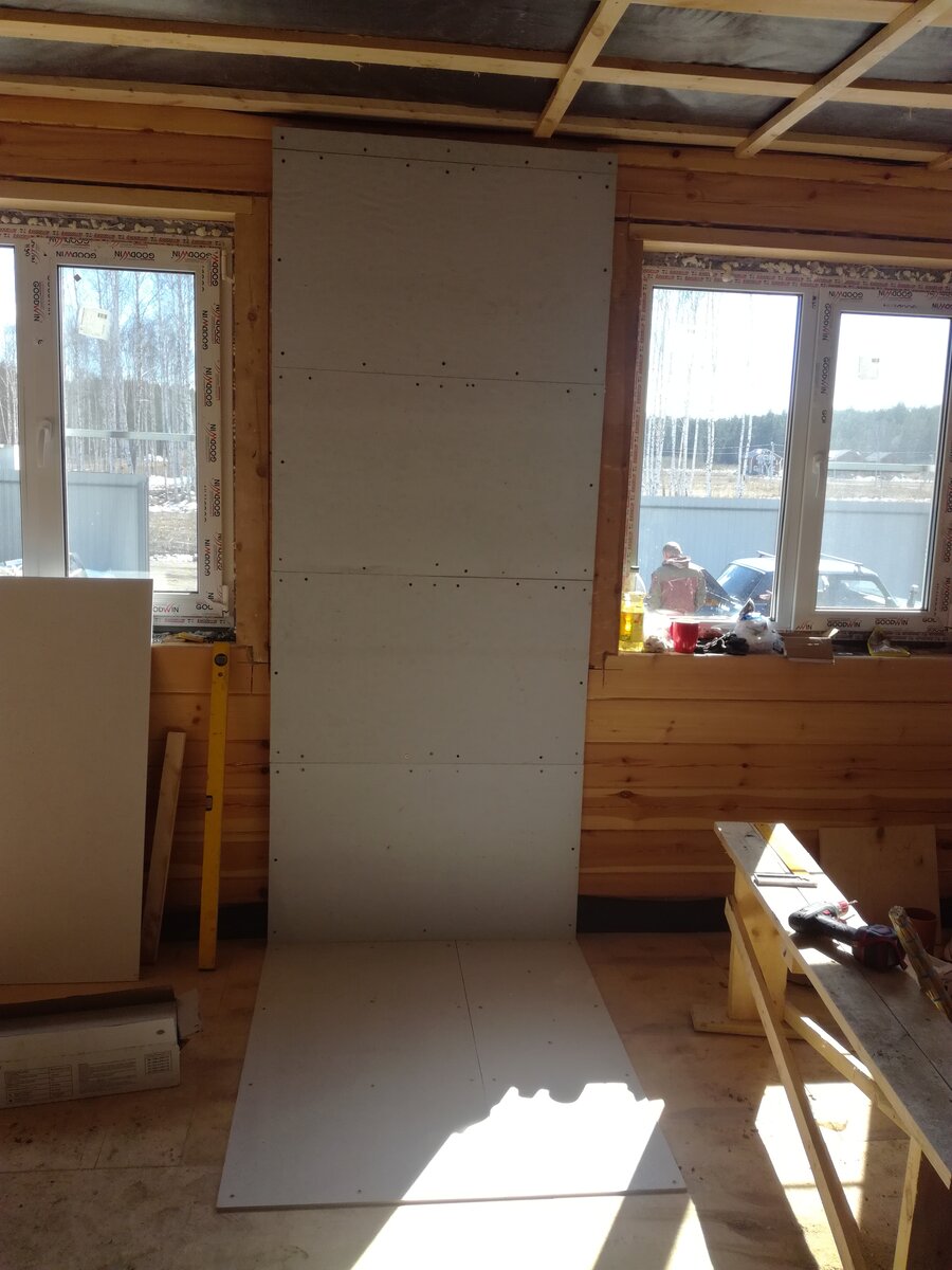 В последние пару лет, стал замечать, что во вновь построенные дома из дерева, в качестве основного источника отопления, ставят электрические котлы, дровяные печи используют на случай отключения электричества, ну и посидеть у печи, долгими зимними вечерами. Оговорюсь сразу, что я не имею в виду газифицированные поселки. Выбирая место для печи, никто не хочет, чтобы она занимала много места, и стараются максимально придвинуть ее к стенке. - Я хочу, чтобы печь была на расстоянии 20 см от стены, и чтобы вся эта конструкция была за "под лицо" с основной обшивкой стен. Вот такая стояла задача. В основном, для защиты стен, мы используем огнеупорный кирпич, если позволяет основание, в конкретном случае, дом стоит на винтовых сваях, и никто не рассчитывал на них нагрузку. Следующее после кирпича, используем огнеупорную плиту "термоизол" с температурой 1100 градусов, толщина которой, составляет 3 см, что так же нам не подошла. Тогда мы использовали огнеупорную плиту "огнеупорофф", предварит