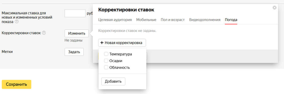 Если спрос на товар или услугу переменчив, как весеннее солнце, хорошо иметь под рукой соответствующий инструмент для настройки рекламы. Мы подумали об этом и добавили в Директ корректировки ставок по погоде. Когда за окном сыро и пасмурно, приятнее остаться дома и заказать пиццу, в холода растёт спрос на услуги такси и шерстяные свитера, а летом — на мороженое. Погода может быть важным фактором, который стоит учитывать в коммуникациях с аудиторией. Чтобы сделать решение этой задачи проще и эффективнее, в Директе появился инструмент для ситуационного маркетинга. Корректировки ставок по погоде позволяют автоматизировать управление рекламой и обратиться к целевой аудитории с наиболее релевантным сообщением, чтобы найти больше новых клиентов и повысить продажи. Например, застройщик в солнечный день может показывать своей аудитории объявление, где говорится о квартирах в ярком квартале, а в дождь — об их тепле и уюте. Как это работает Сейчас корректировки работают для текстово-графически